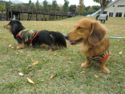 初めまして☆Mダックスなのにぃぃっ~ BIGな親子^^リキヤ&翔です。