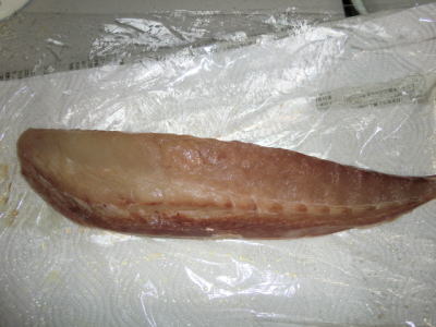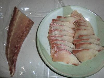 長さ35㎝程度のハマチのブロック お手製のお皿に切ってみました。