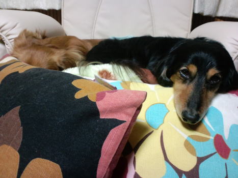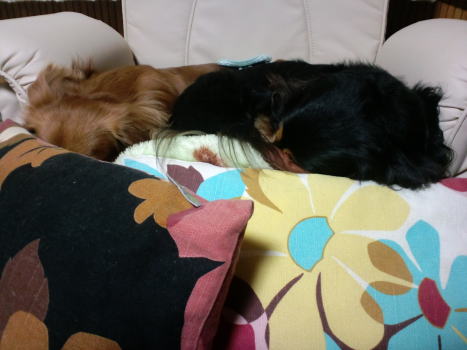 リキヤと翔もすもす。 天気が良すぎて日中の散歩はご遠慮したいオイラ達
