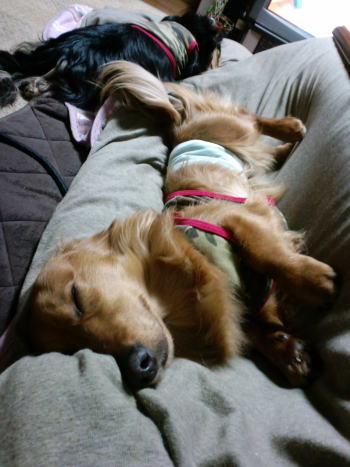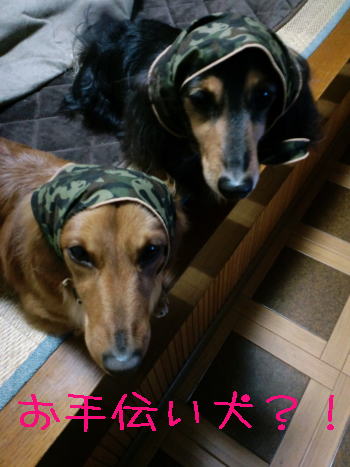 自宅へ帰ったオイラ達、お73にお手伝い犬にされちゃったよ